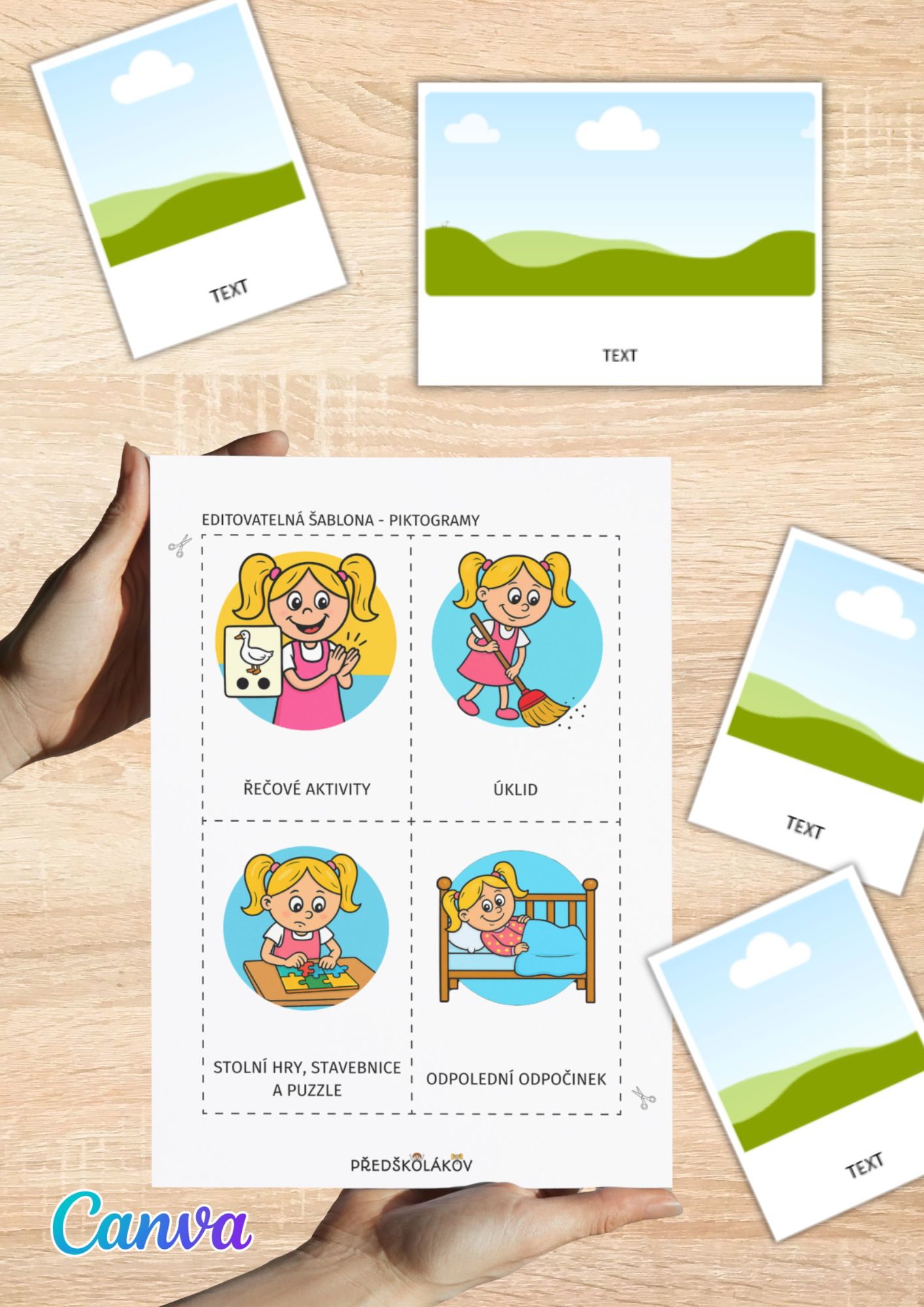 Piktogramy do školkyPiktogramy jsou praktickou vizuální pomůckou, která pomáhá dětem lépe se orientovat v denním režimu, činnostech a prostředí. Díky nim děti lépe pochopí, co je čeká, a učí se snáze plánovat svůj čas.