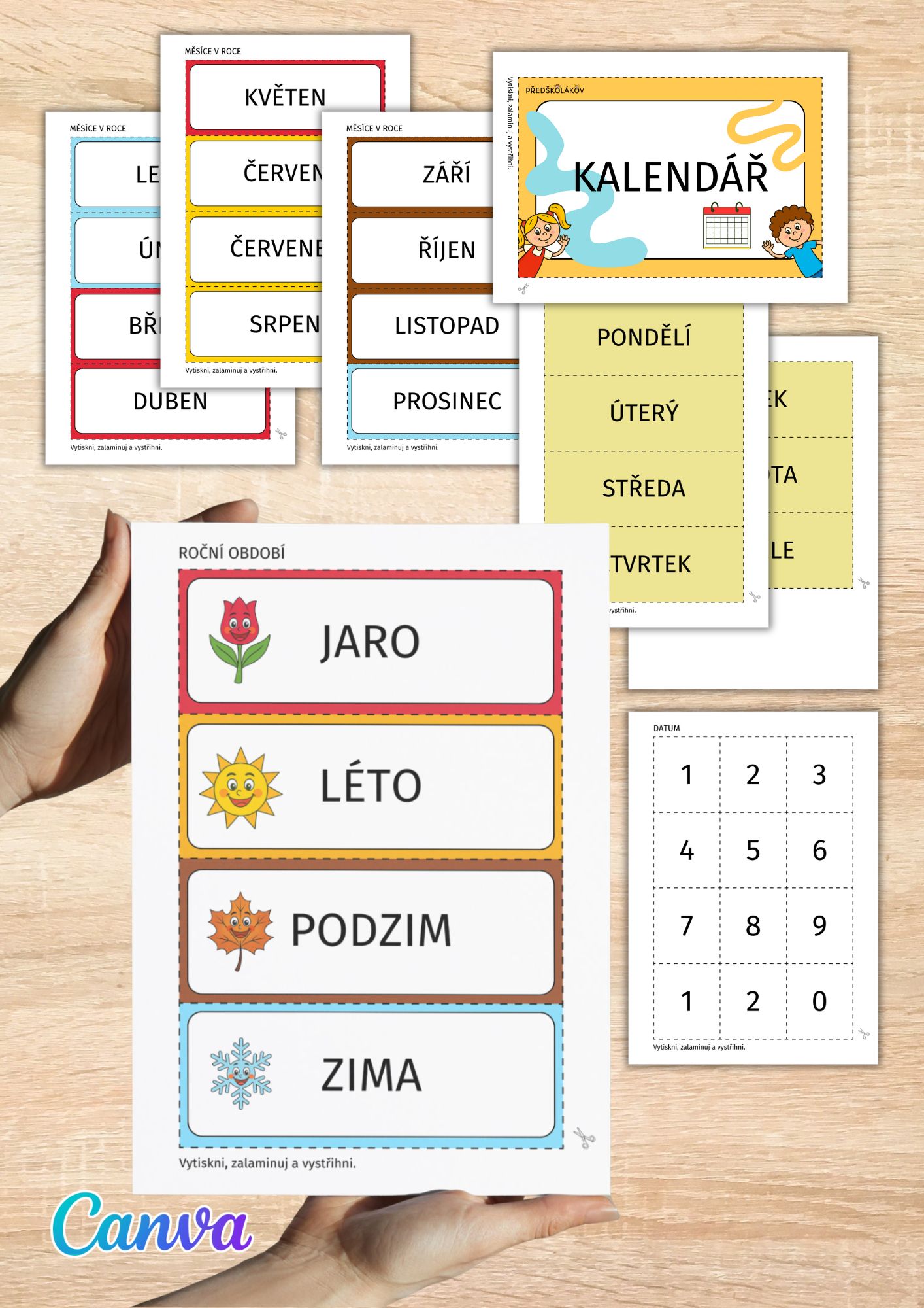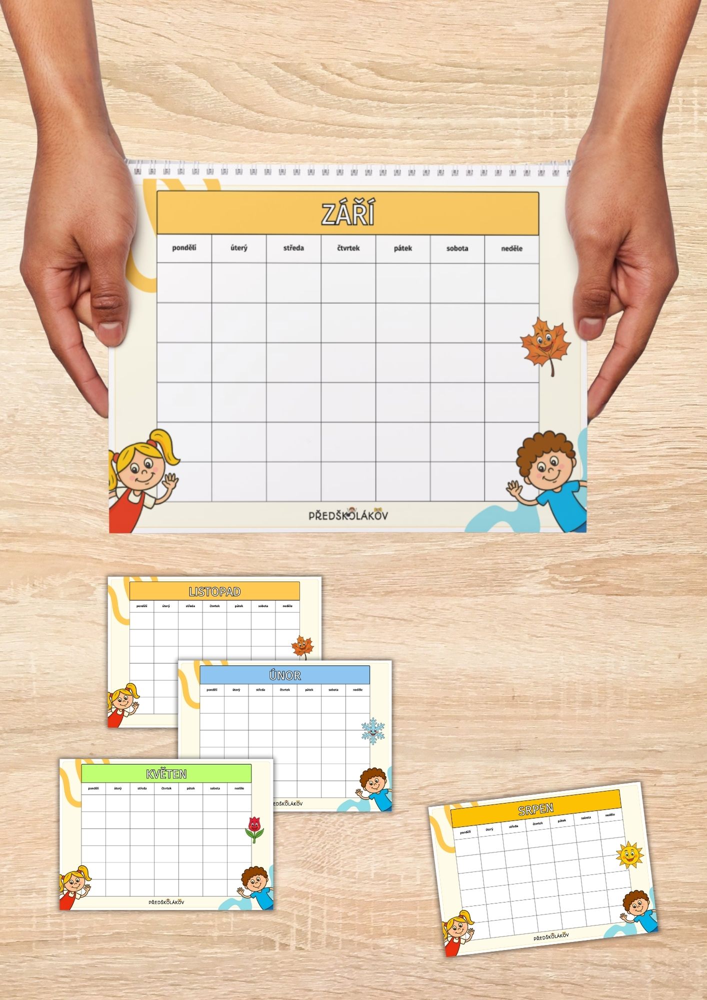 Kalendář do školkyTato šablona slouží k vytvoření přehledného a vizuálně poutavého kalendáře na nástěnku nebo tabuli. Obsahuje číslice k jednotlivým dnům, názvy dnů v týdnu, měsíce i roční období. Vše je připraveno k editaci, vyti […]
